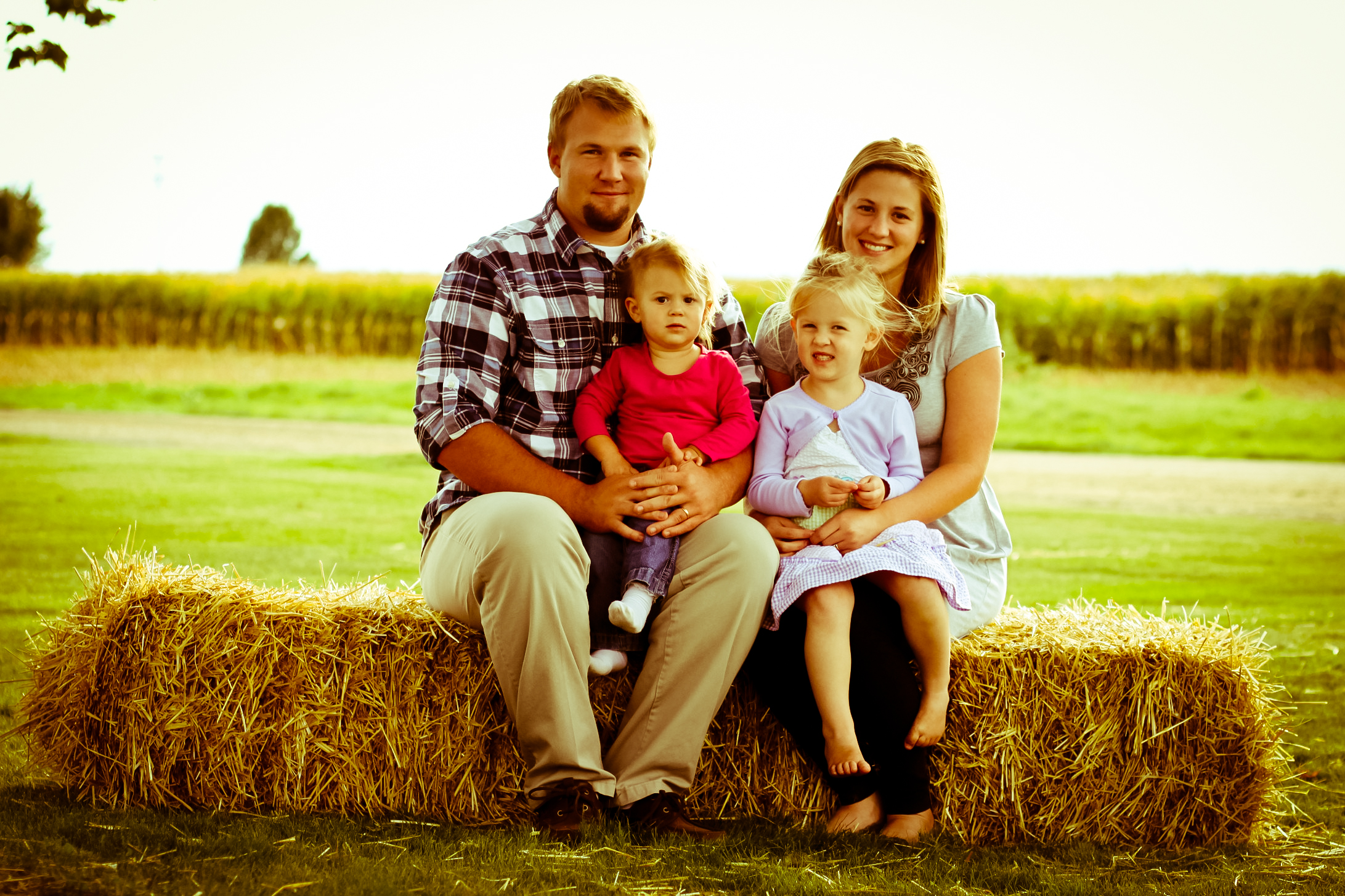 A few weekends ago, the family headed out the Fall Family Farm Photo Shoot, hosted by j&j brusie photography. The girls were raising money for a scholarship to be started in memory of Ben’s Grandpa Dave, who passed away in August. We had a good time, munching on apples we brought from our apple trees, visiting family and friends, and getting our first family photos done.