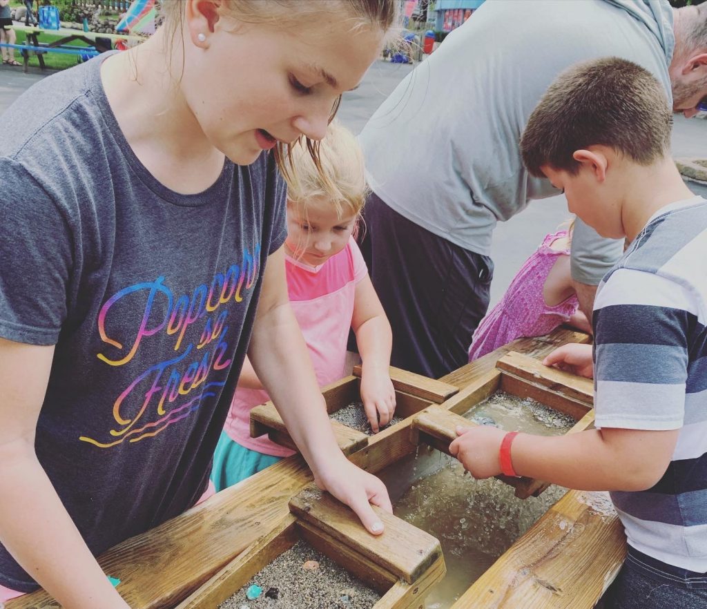 Next up was mining for precious jewels and gold. All 5 kids loved this activity, which is easily located right in the center of the park, and it kept them happy and cool as they searched through the water for gems. Plus, they got to keep the jewels they found as a souvenir for home.